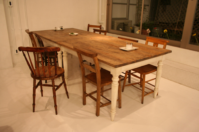 アンティーク風に仕上げたテーブルですが、モダンなお部屋やカフェにも、